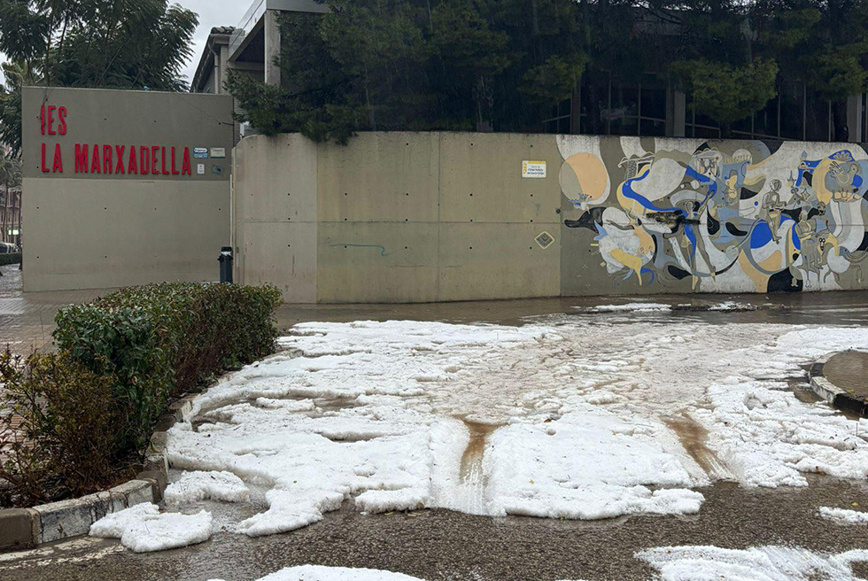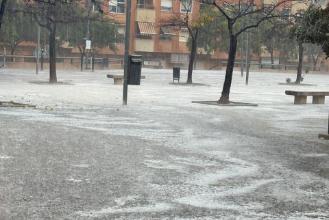Cau una gran granissada en Torrent que deixa una imatge blanca nadalenca