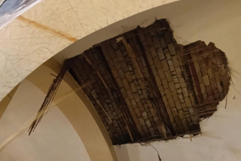 El monument, obra de l’artista Miguel March, ha cedit a causa del vent i ha quedat en terra, fet que ha obligat la comissió a reorganitzar els treballs de la plantà.