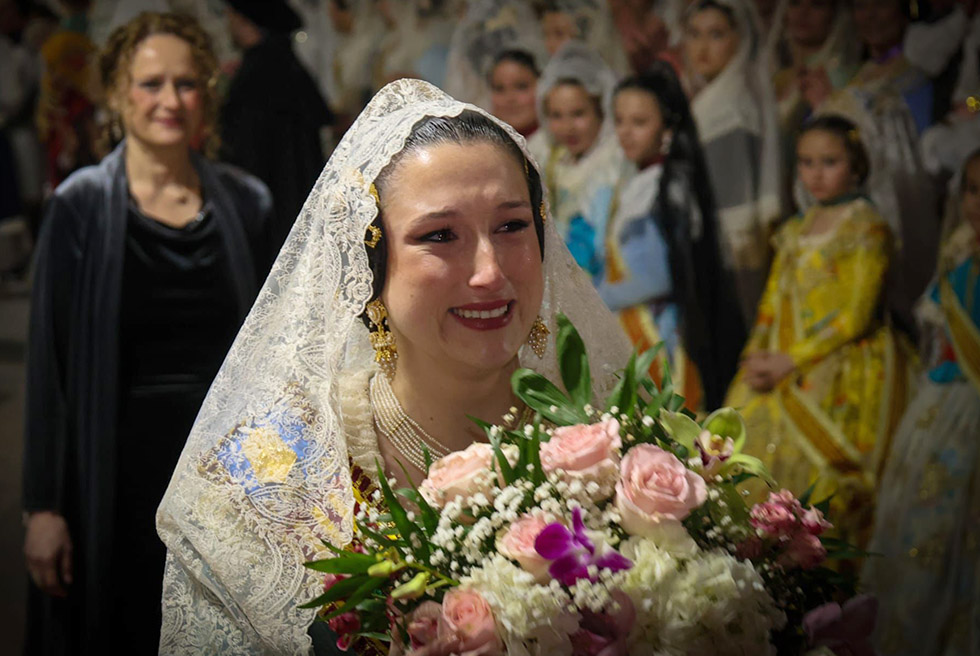 L'emoció va ser evident en el rostre d'Andrea Adelantado i Sara Magán quan, després de completar el recorregut, van depositar els seus rams de flors als peus de la imatge de la Verge dels Desemparats. Amb les seues ofrenes es va tancar el mantell floral que, com cada any, elaboren els vestidores de la Verge amb milers de rams aportats per les comissions falleres. El resultat és un espectacular mosaic de flors que vist la patrona i que es convertix en un dels grans símbols visuals de les Falles de Torrent.